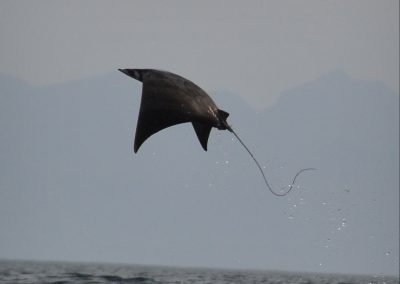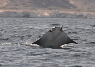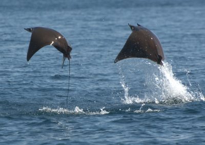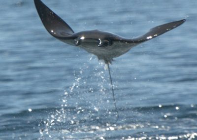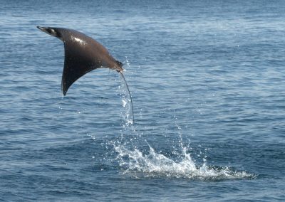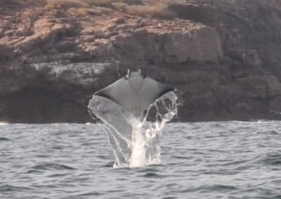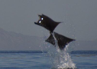 Hundreds of mobula rays congregate in the Sea of Cortes every year. In one of the most spectacular wildlife performances on Earth, they can be seen leaping from the water, sometimes three or four at a time and reaching a height of nine feet or more above the water, before returning to earth with a loud splash.