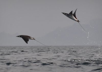 In fact, mantas and mobulas have the largest brain to body ratio of any shark or ray, and are known to engage divers and to show complex behaviors. And complex beings like to have fun!