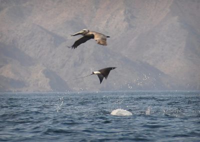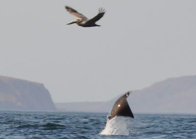 Then, just when it seemed that these dancing acrobats would soar into the sky, gravity claimed them back, and they would return with a loud plop that resonated across the calm sea. For all their flying grace, they do not return like an Olympic diver, cleanly knifing through the water. Once gravity takes hold, they resemble the funny kid on the high board, who hits the water belly first with a gigantic and seemingly painful splash.