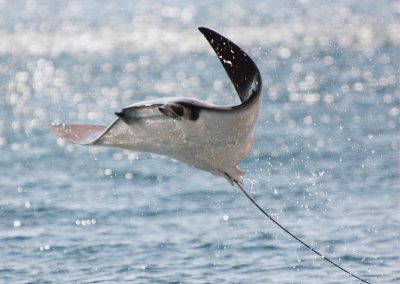 Their grace and elegance were a sight to behold. I was amazed at the athletic ability of these high-jumping creatures, almost as though their huge “wings” were equally at home above and below the water.